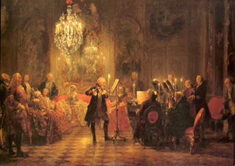 フリードリヒ2世(Friedrich Ⅱ 1712-1786)はプロイセンの啓蒙専制君主で、皇太子時代の1728年からフルートの演奏をクヴァンツ(Johann Joachim Quantz 1697-1713)に師事した。また、フルートのための作品を多数作曲もした。