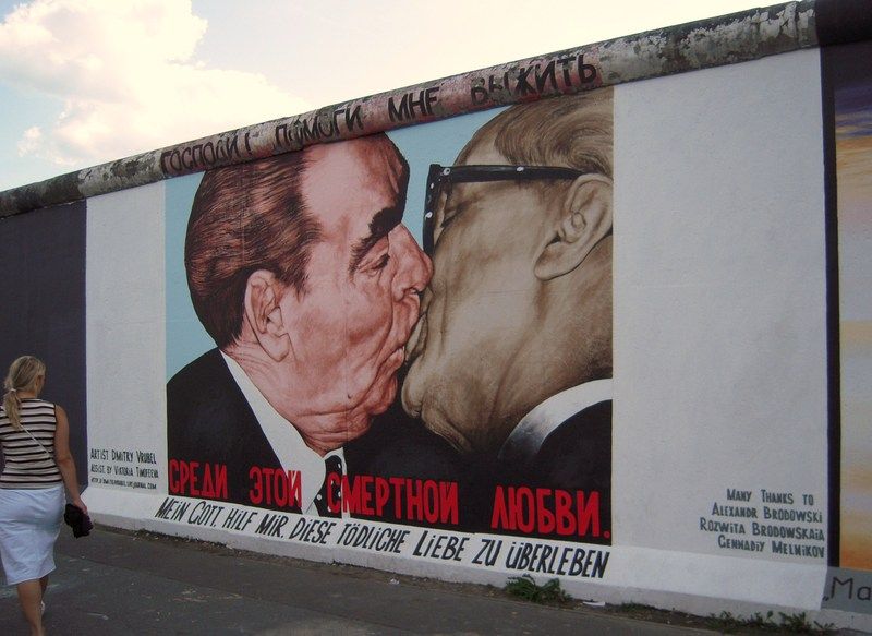 そのなかで「おっ、これは私も見たことがある」というのが、ソヴィエト書記長だったブレジネフと東ドイツの議長ホーネッカーのキス場面。う~ん、気持ち悪い……