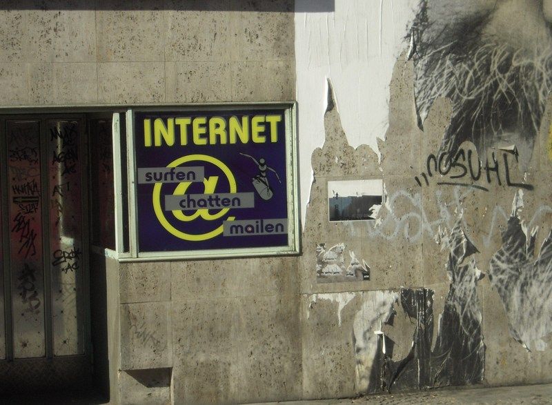 それはそうと、ホテルへ戻るバスの車窓から私の目を引いたのがインターネット・カフェの看板。おぉ、ドイツにもインターネット・カフェがあるのだ。グレート!