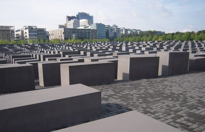 ブランデンブルク門へはホテルから歩いて行ったのだが、途中にユダヤ人慰霊碑があるところを通った。墓石というか、機能美にあふれた四角い石がずらーっと並んでいる。不気味じゃないけど、神妙な気持ちにさせられる。ヒトラーって悪い奴だ、ホントに。でも、ドミノ倒しを連想してしまう、い