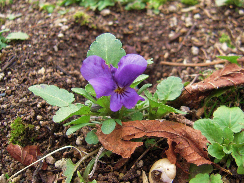 庭ではスミレがさりげなく小さな花を咲かせていた。