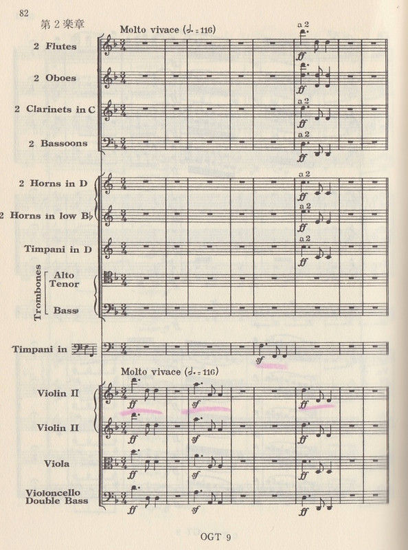 一応スコアを載せておくが、上がベートーヴェンで下がドヴォルザーク。眺め的には私にはよくわからないといえばわからないが……