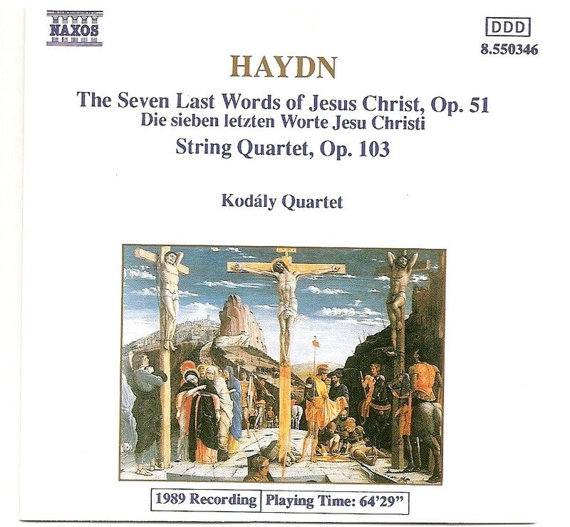 この曲は1787年の作。もともとは1785年に作曲した同名の管弦楽作品であったが、四旬節にスペインのカディスで演奏するために注文を受け、弦楽四重奏曲に編曲したものである。