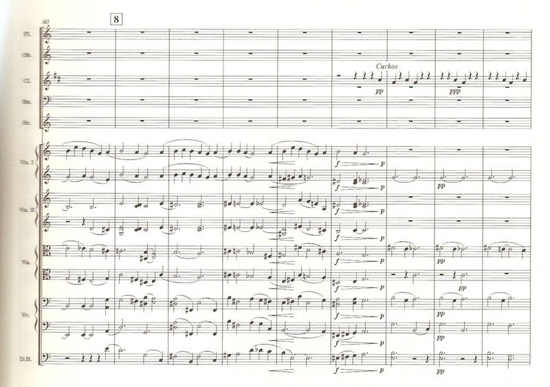 春を告げる(北海道では初夏だが)カッコウの声。すべてが生き生きとしてくる春の到来。しかし、ディーリアスは喜びの感情を噛みしめるかのように、穏やかな音楽でそれを表現している。なお、楽譜では、クラリネットがカッコウの鳴き声を奏する部分に「Cuckoo」と注記がある(掲載した楽譜は日本楽譜出版社のもの)。