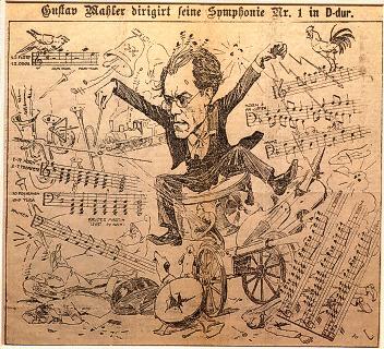 大きな曲で有名なのは、マーラーの交響曲第1番だ。マーラーらしくカッコウの鳴き声の音度をそのまま用いてはいないが、繰り返しカッコウが鳴く。掲載したように当時のカリカチュアには、その譜と鳥の絵まで描かれている。