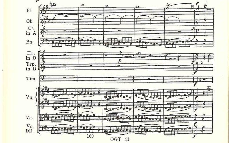 私はこの序曲の半ばのホルンの響きがなぜか異常に好きだ。小節数で言うと、161小節目ということになる。別にメロディーを吹いているわけじゃないんだけど、しかもpなのに、好きだ。好きだから、そこの部分のスコアを載せておいた(掲載譜は音楽之友社のもの)。