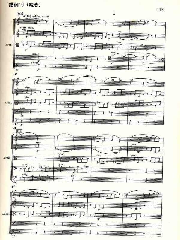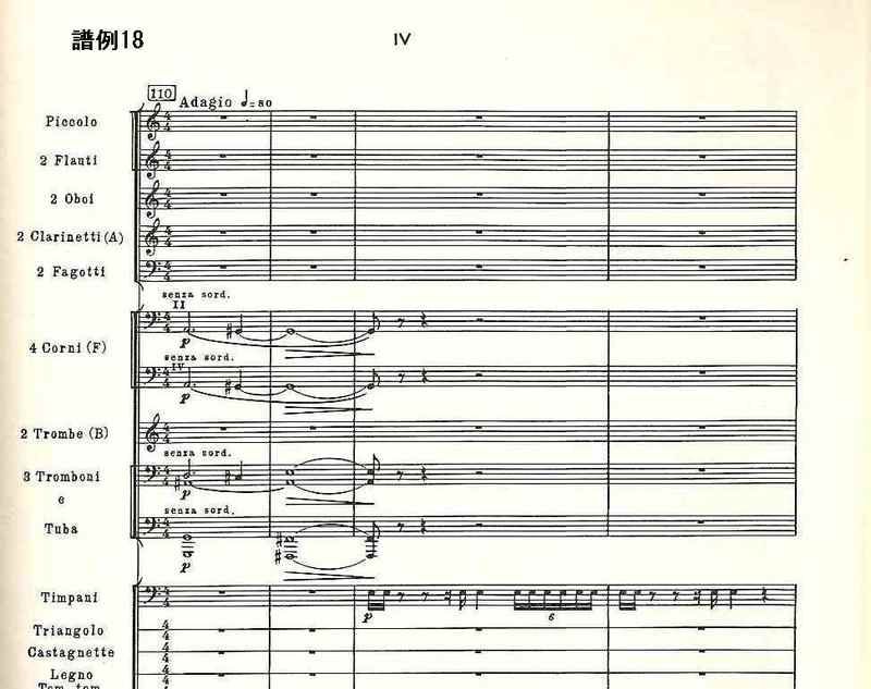 ニーベルングの指輪」の第2部)の“運命の動機”の引用で始まる(スコアは全音楽譜出版社のもの。以下同様)。それに続くティンパニのリズムは、同じくワーグナーの「神々の黄昏」(同第4部)の“ジークフリートの葬送行進曲”のリズム・パターンである。