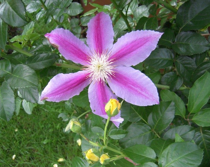 夏まで待っても浜辺に打ち上げられた小型難破船のようなままだったので、地際から切ってしまった。それはクレマチスのドクター・ラッペル。Dr.Ruppelはパテンス系の品種で花径は14~16センチとかなりの大輪である。わが家ではツルバラのエバーゴールドのそばに植え、同じトレリスに絡ませていた。バラの黄色の花とラッペルの紫色の対比がなかなかだったが、ラッペルの大きすぎる花は薄暗い夜の店で働いている濃い化粧をした大顔の女の子みたいな印象もぬぐえなかった。