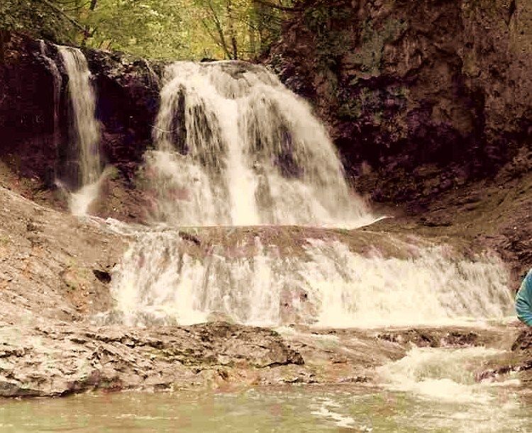 写真は登山前に平和の滝で撮った私の元気満々の姿だ(右側の腕)。なお、この写真を見て、変なものが写っていると今さら言われても、私としては非常に困る。