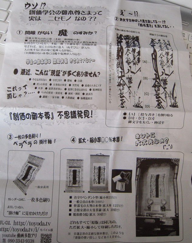 なんかよくわからないんですが、正宗さんはガッカイさんに相当お怒りのような感じですね。ただ、このチラシを作って配っているの人(組織)がどういうところなのかもよくわからないですね。チラシの漫画もタッチもおどろおどろしいというか、ウマヘタっぽいというか……。密かに第2弾が入って来ないかなと思っていたりして。