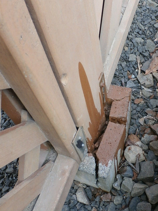 なんか汚いなと思うかもしれないが、これは先日、ガードラックという防腐剤をやけくそで注ぎ入れた痕跡だ。支柱の下の方が腐りかけていたからだ。
