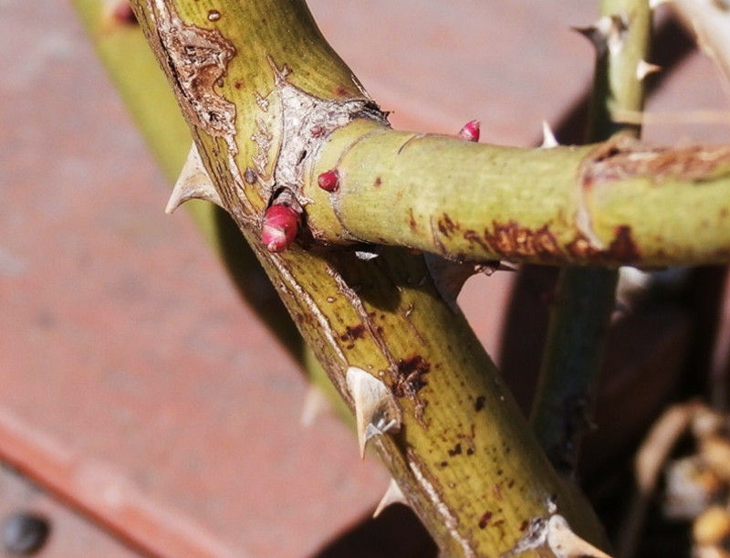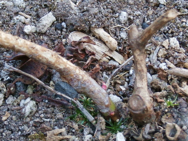 バラは今年買ったレディ・エマ・ハミルトンが他のものより大きなつぼみをもっている。例年最初に咲くのはオールド・ブラッシュ・チャイナなのだが、今年はわからんな……。