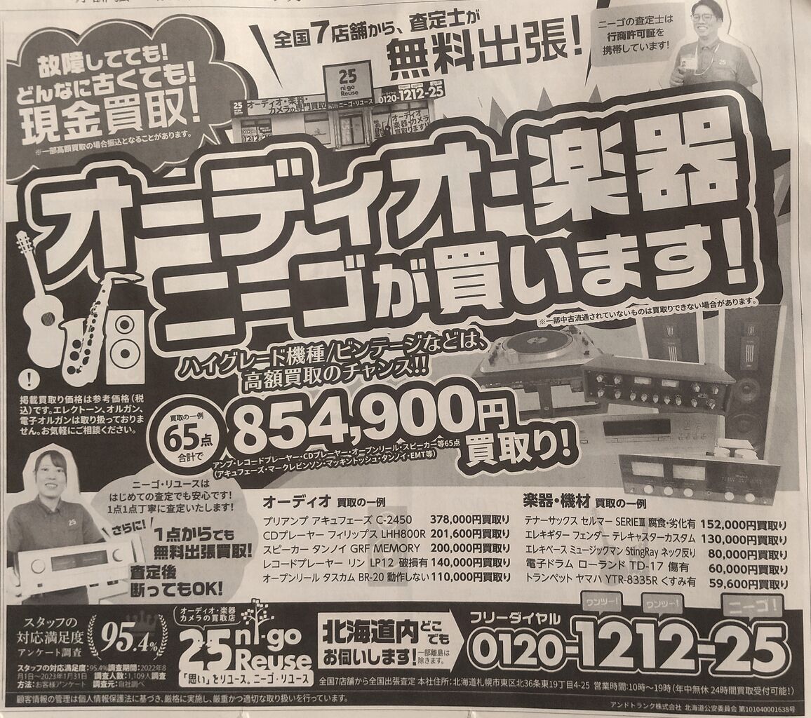 このところは、オーディオ高価買取の広告が北海道新聞にもときどき載っている。