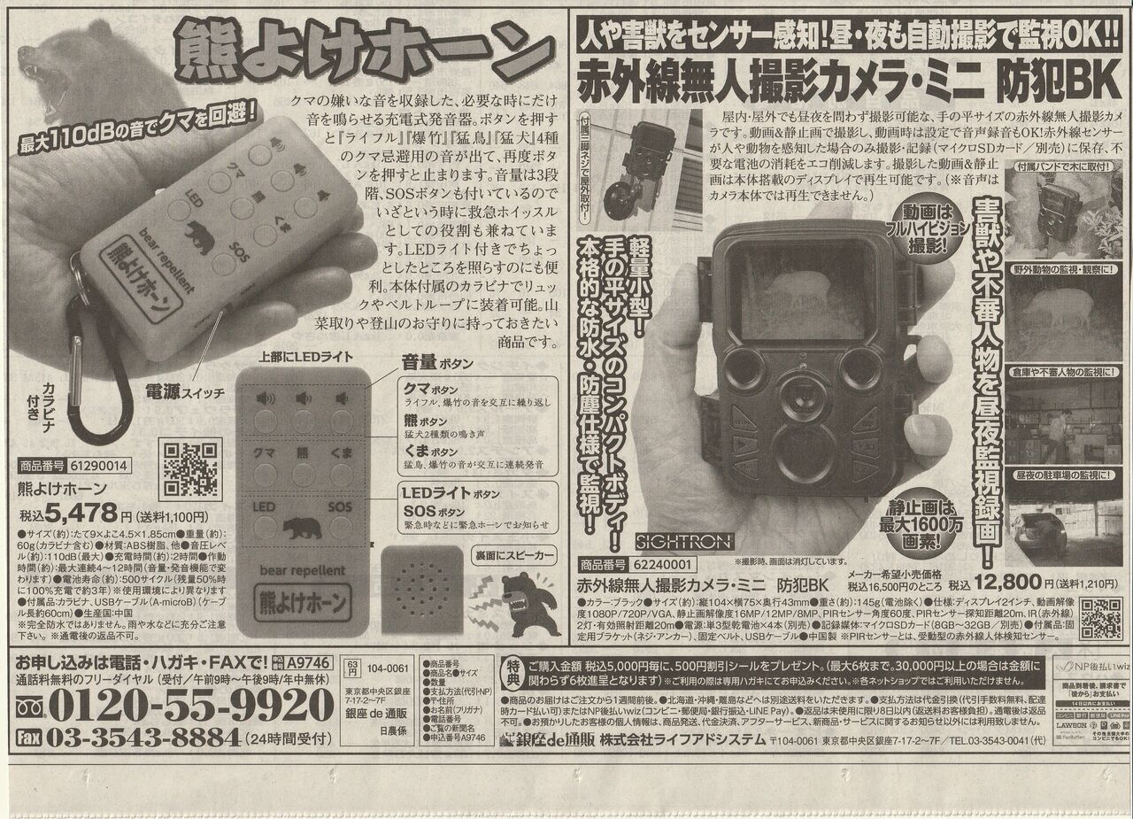 熊が人里周辺にも当たり前のように出没していることは怖いことだが、この広告はその熊よけのもの。