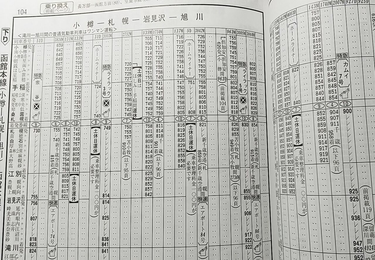 そんなとき、人々を不安に陥れる "7:03発の列車はまだ岩見沢駅に停車中" というアナウンスが。じゃあ、全然5分じゃないじゃん。